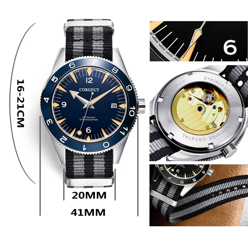 Special Price Corgeut Diver Watch Automatic Mechanical James 007 Bond Seagull Movement Brand Luxury Men Male Wris with Free Shipping Worldwide!