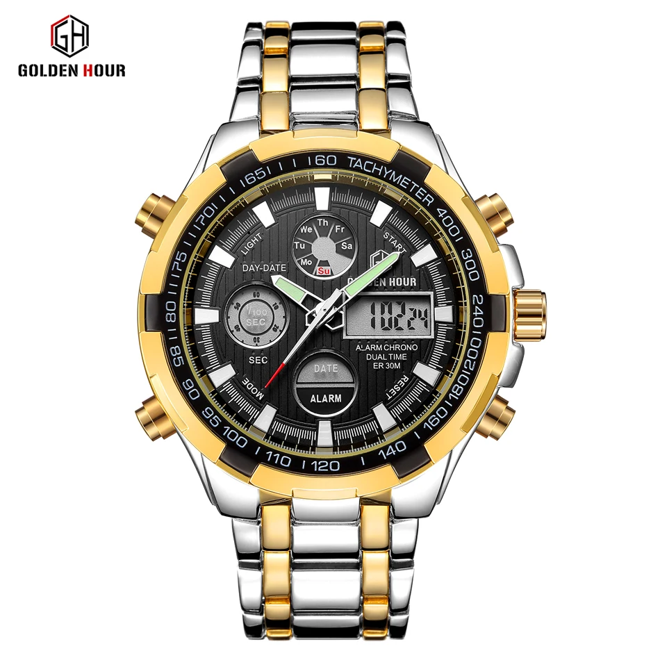 Goldenhour Luxury Brand Mens Fashion Sport Watches Quartz Digital Analog Clock Man Full Steel Wrist Watch Relogio Masculino