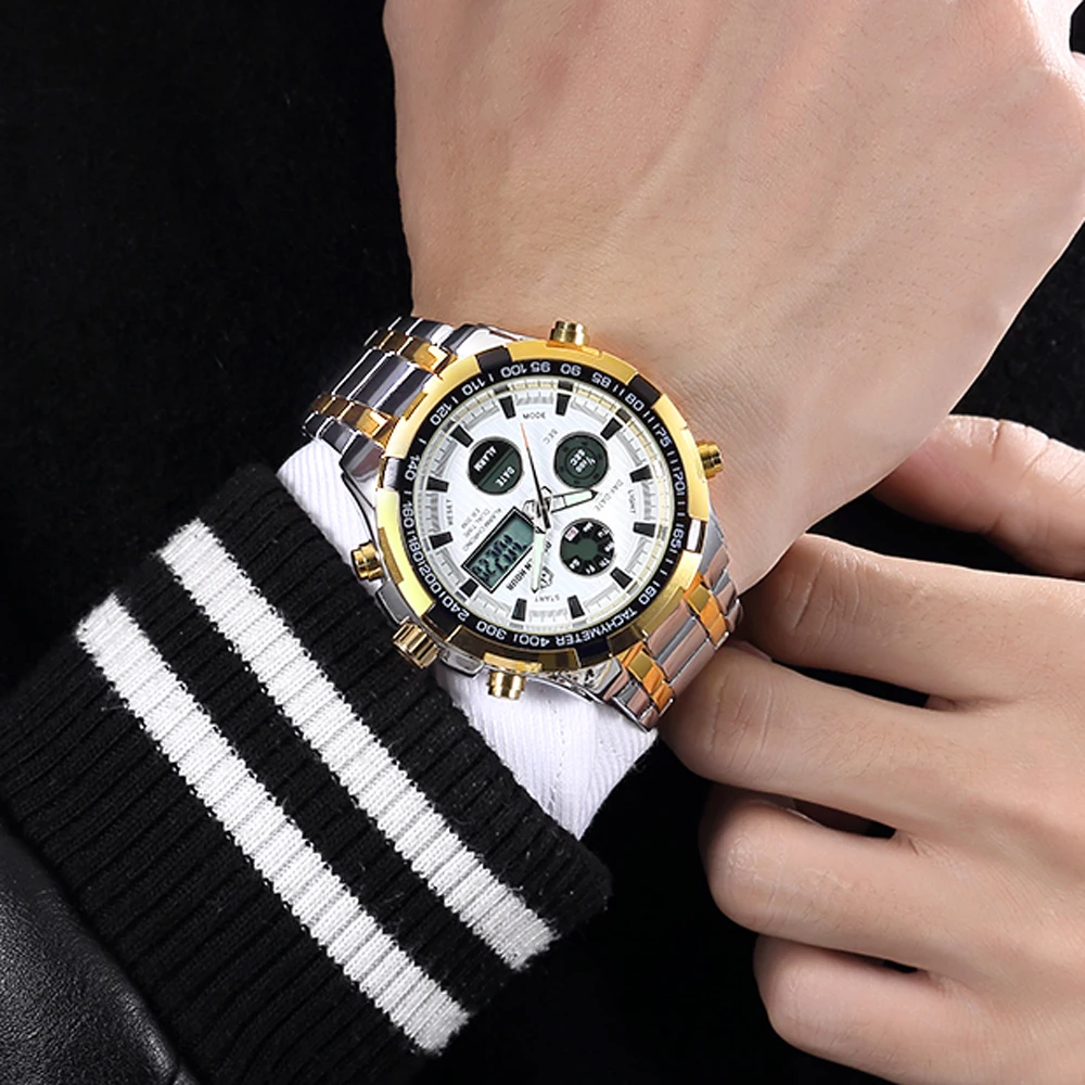 Top Brand Goldenhour Luxury Digital Analog Watch Mens Sport Dual Display Waterproof Quartz Wristwatch Fashion Relogio Masculino