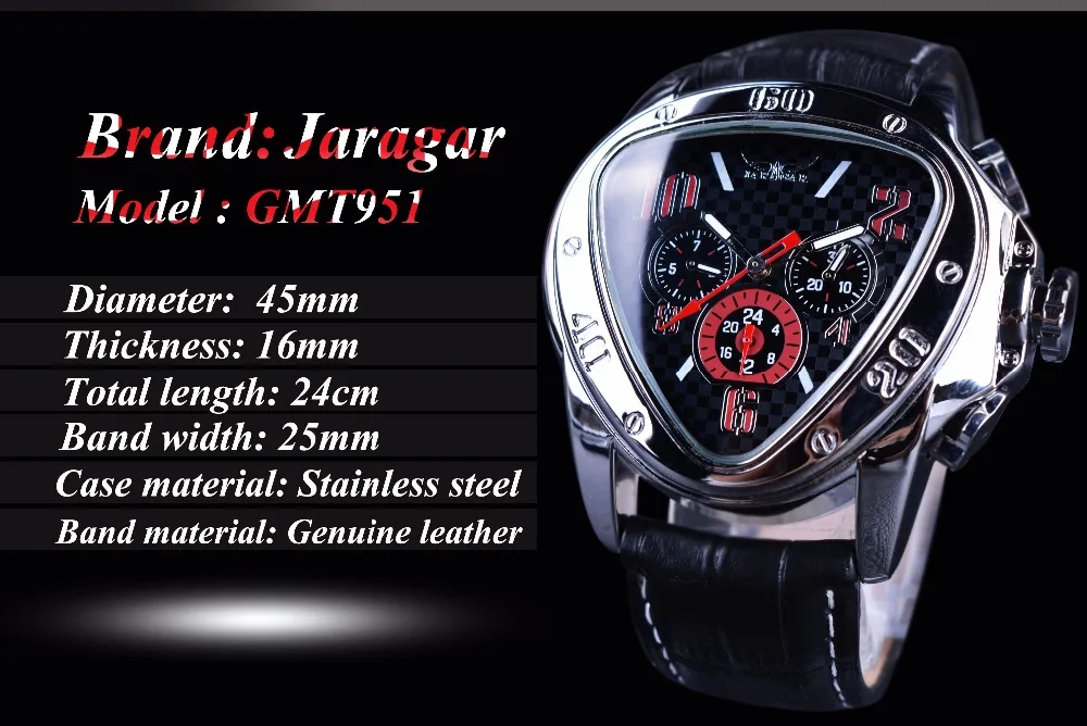 Limited Offer Jaragar Sport Racing Design Geometric Triangle Pilot Genuine Leather Men Mechanical Watch Top Brand with FREE Shipping Worldwide!