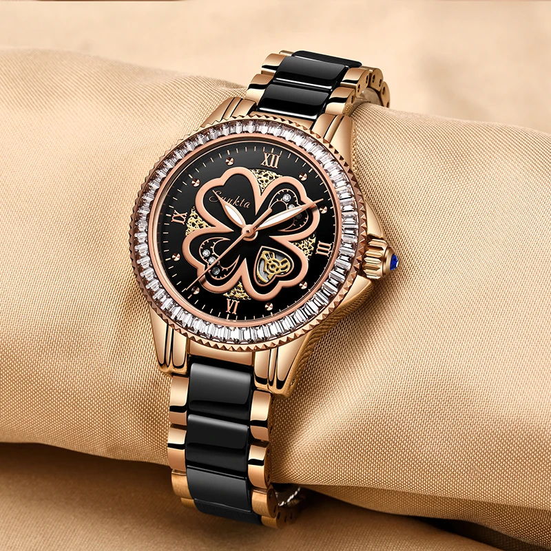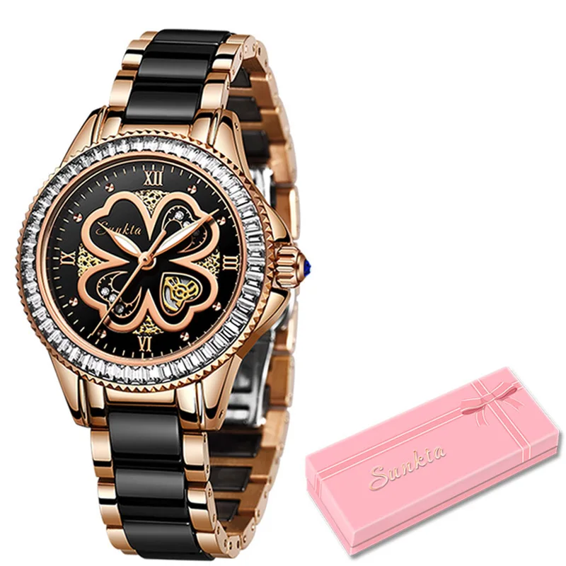 Sunkta Women Watch Brand Luxury Casual Fashion Watch Women Ceramic Waterproof Ladies Watch Diamond Gift Bracelet Reloj Mujer