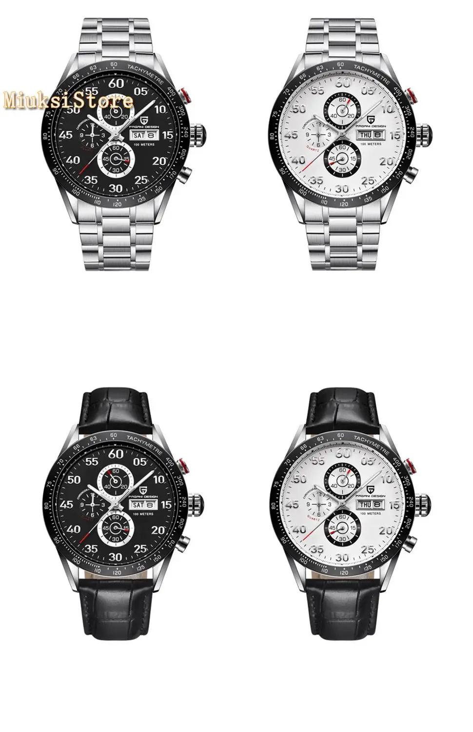 Fashion Luxury Brand Pagani Design 43Mm Slver Steel Case Black Dial Date Leather Chronograph Japanese Quartz Mens Watch