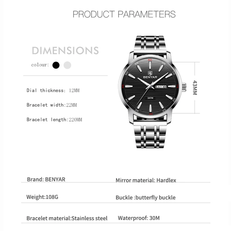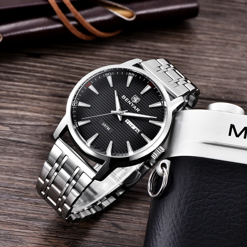 Cheap Offer Benyar Men Watches Top Brand Luxury Watch Quartz Fashion Stainless Steel Men Watch Waterproof Bus with FREE Worldwide Shipping!