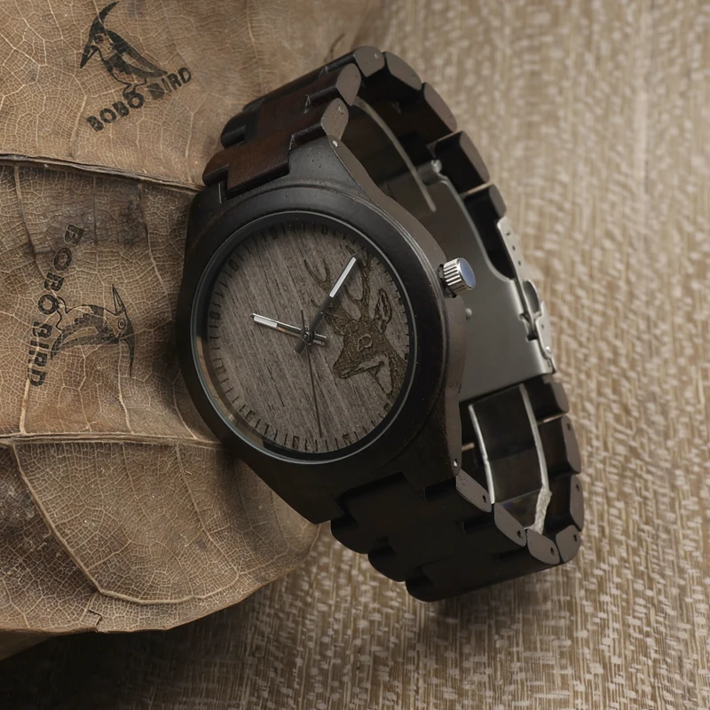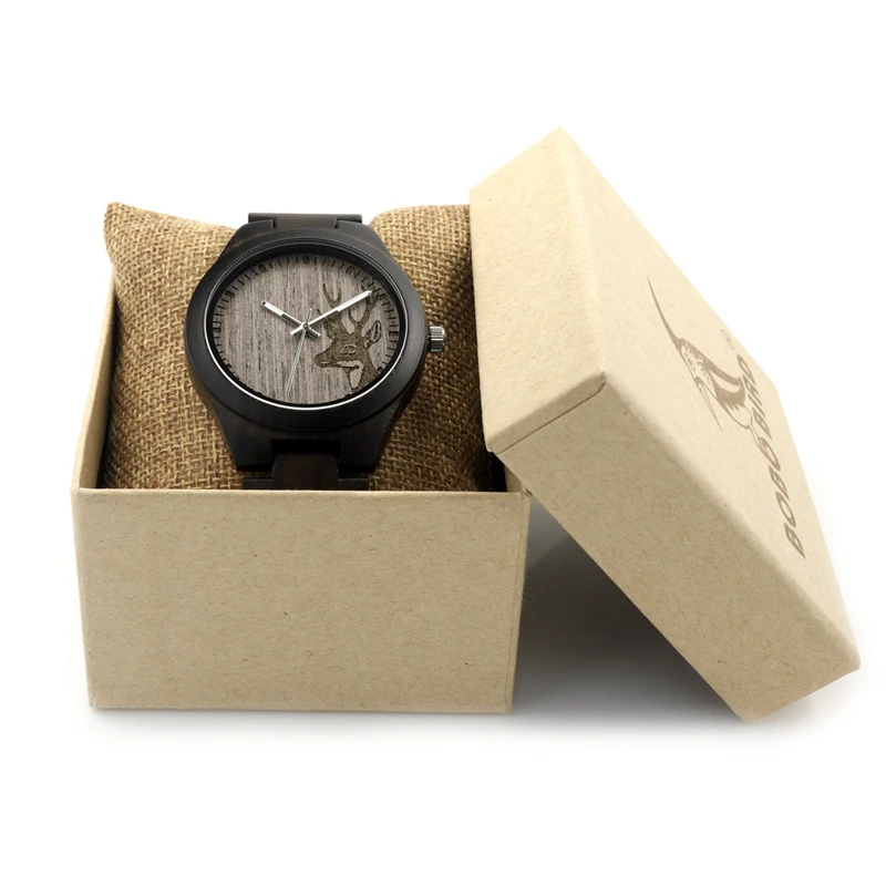 Best Price Bobo Bird I26 Mens Unique Ebony Wooden Watches Deer Head Dial Casual Quartz Wrist Watches With Wood with FREE Worldwide Shipping!