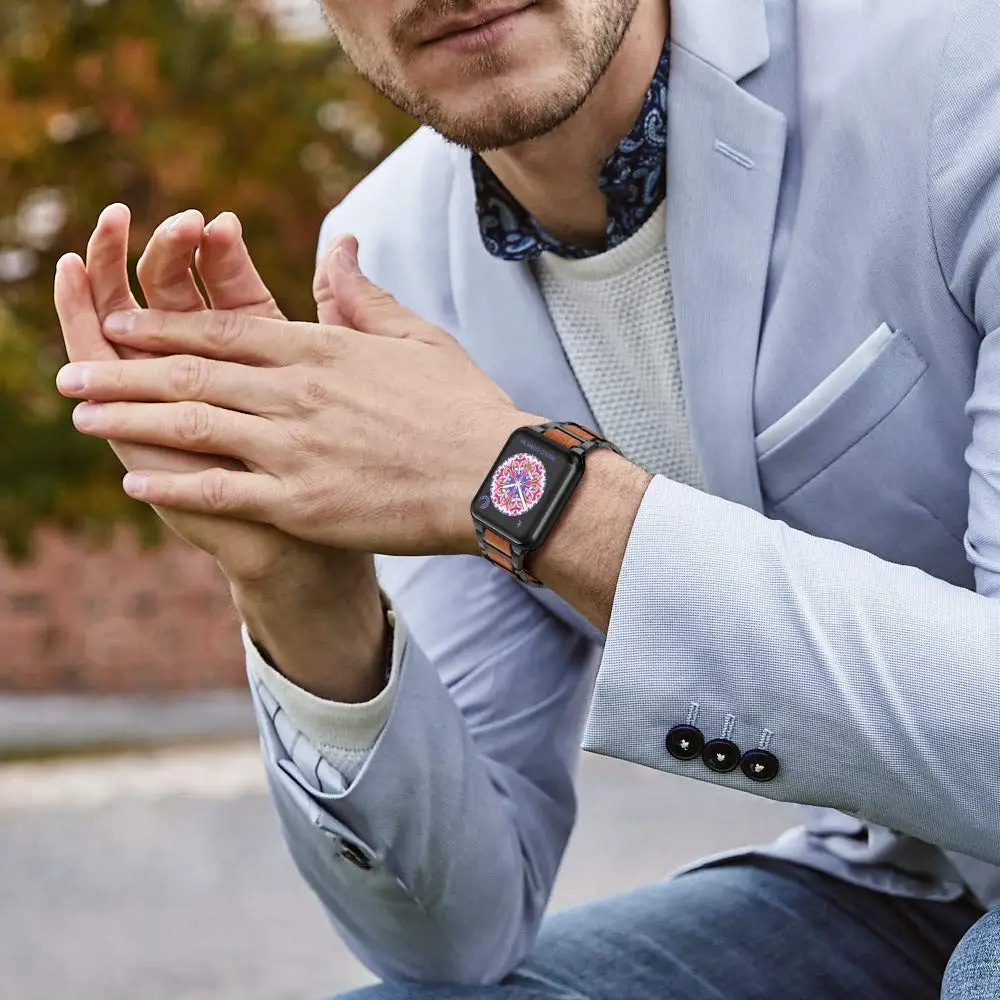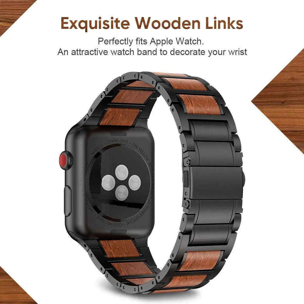 Limited Price Lightweight Wood Strap For Apple Watch Band 40Mm 44Mm Metal Wristbands Replacement For Iwatch with Free Shipping Worldwide!