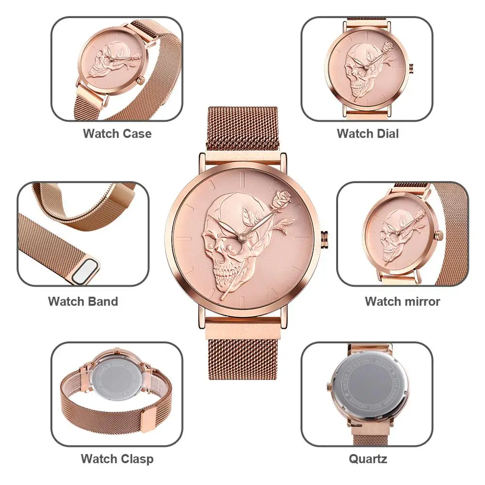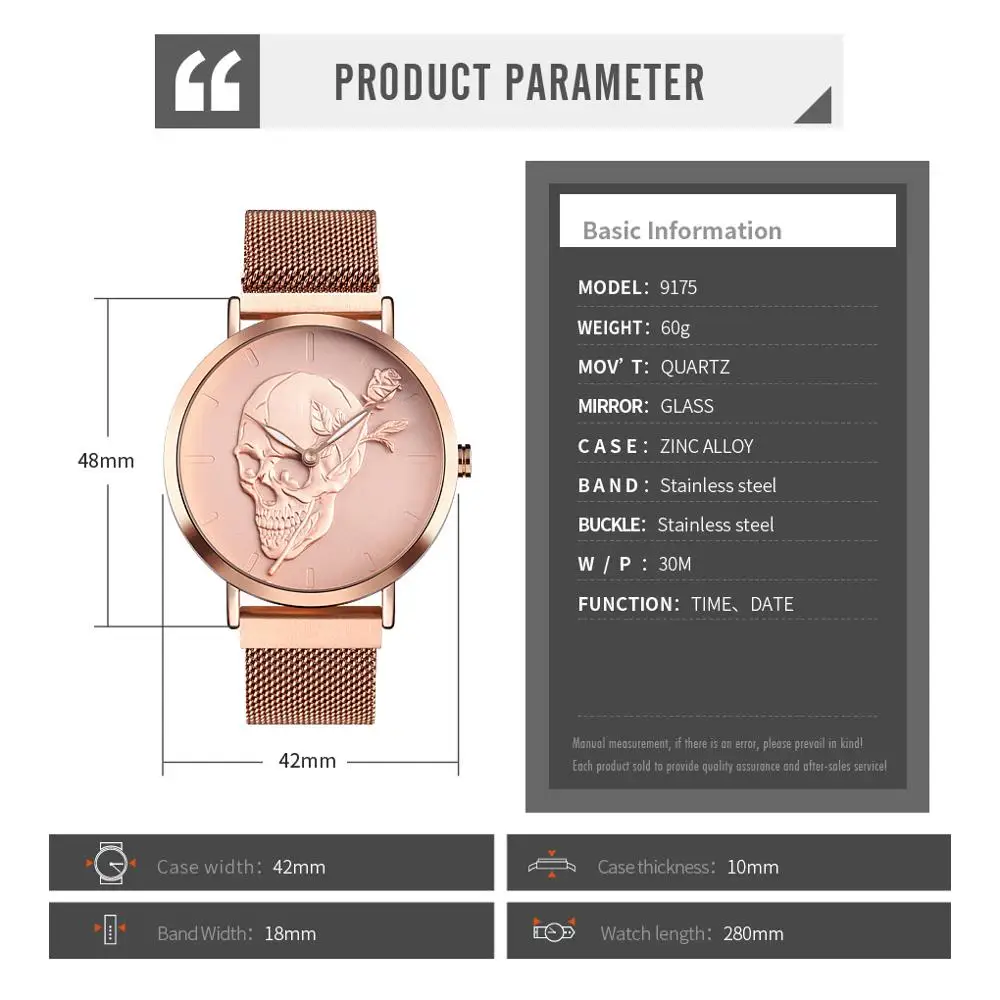 Discount Price Skmei Creativity Magnetic Steel Strap Skull Quartz Men Watch Luminous Hands Male Waterproof Wrist with FREE Worldwide Shipping!