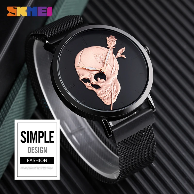 Skmei Classic Skull Pattern Quartz Watch Stainless Steel Sport Watches Waterproof Male Wristwatch Relogio Masculino